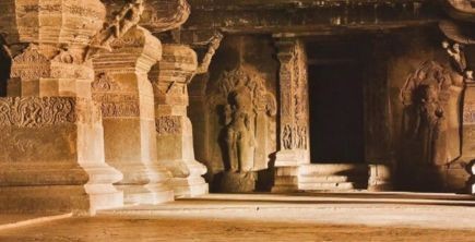 Ancient temple with symbols
